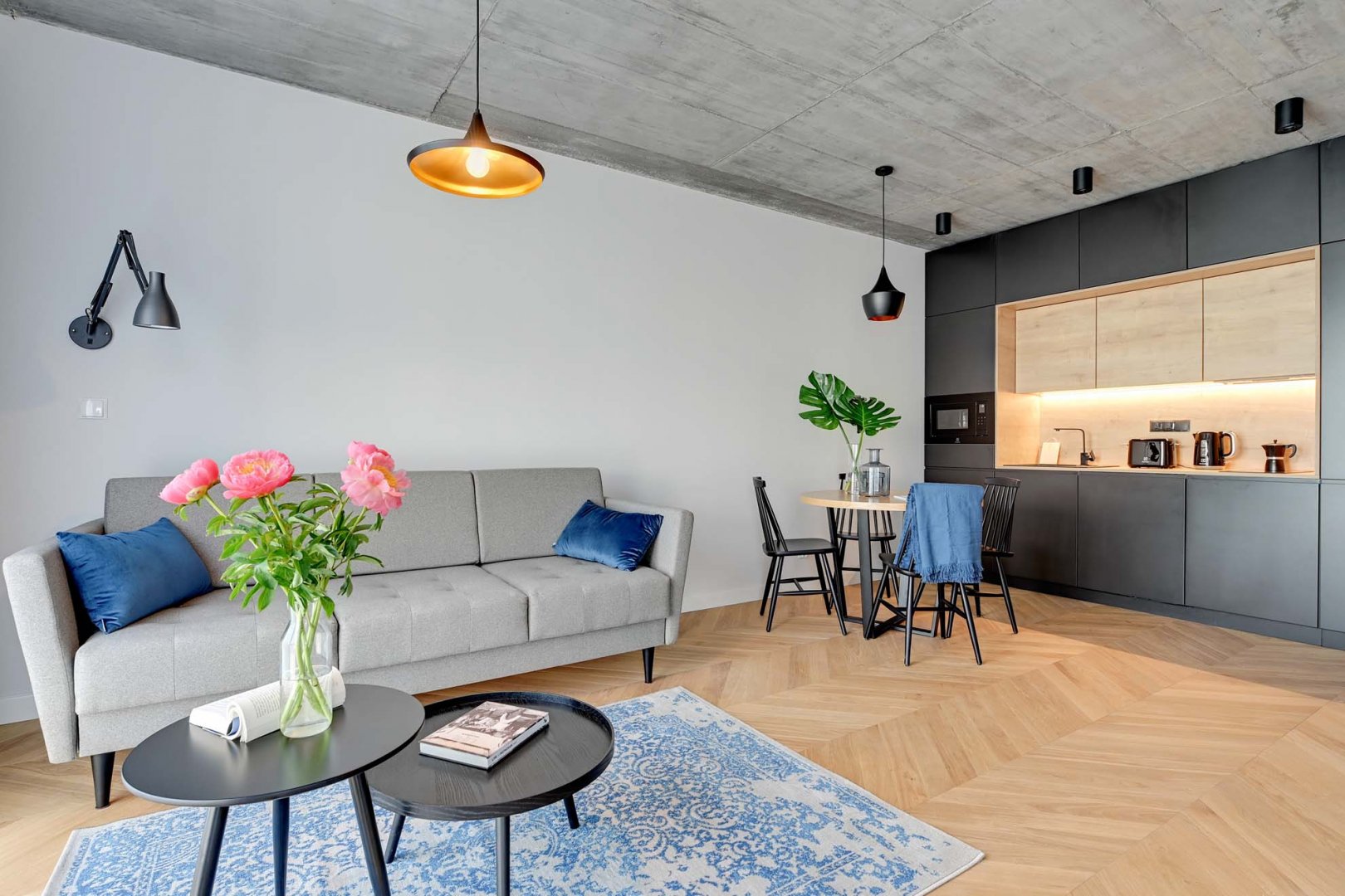 - salon z wygodna rozkładana sofa dla 2 osób