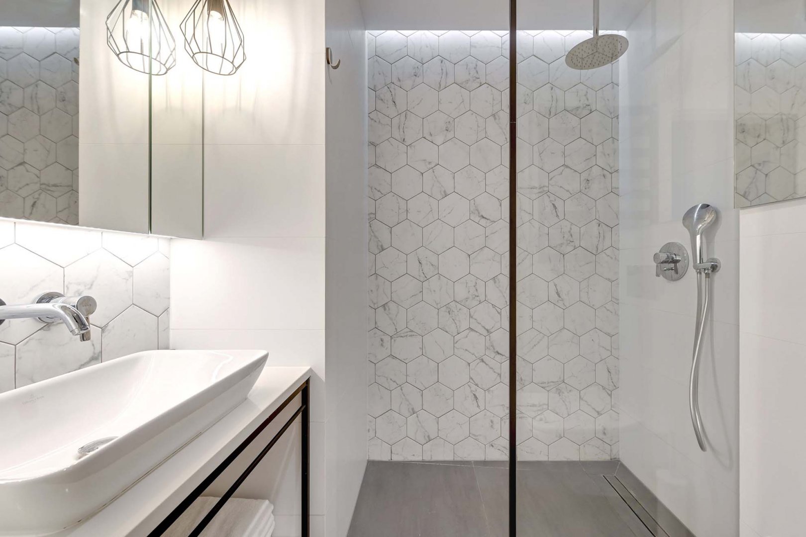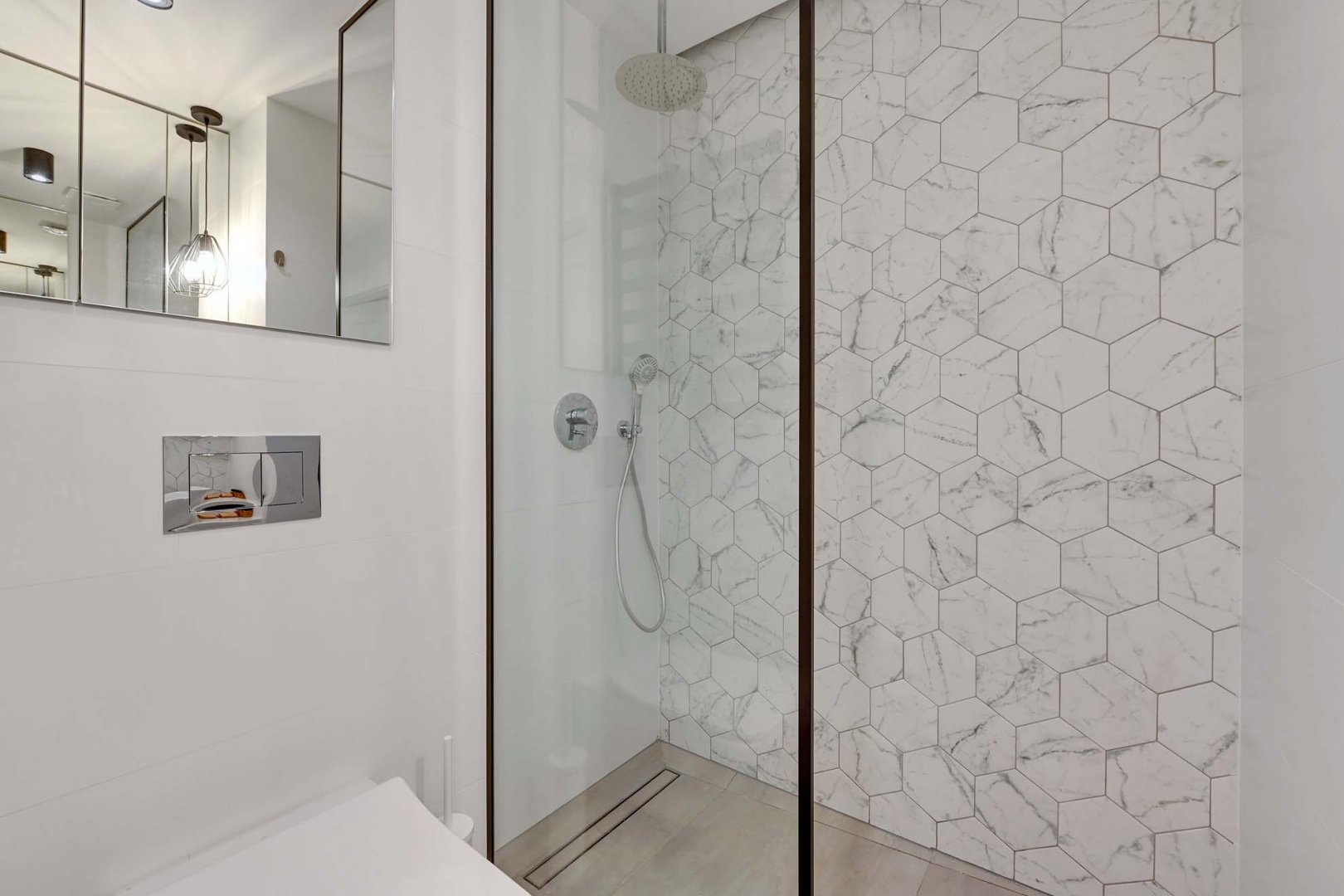 - łazienka z prysznicem i deszczownicą