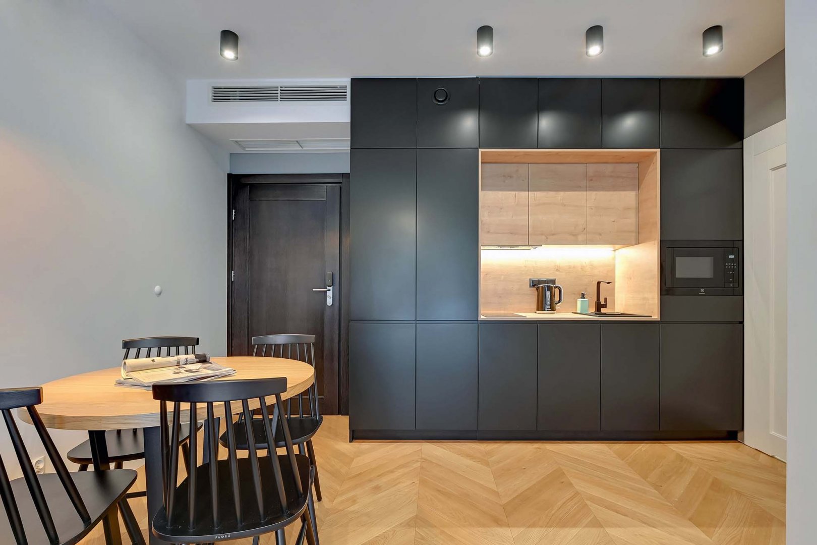 W apartamencie znajduje się wyposażony w lodówkę, zmywarkę, płytę grzewczą, mikrofalówkę, czajnik elektryczny i toster oraz przybory kuchenne aneks kuchenny.