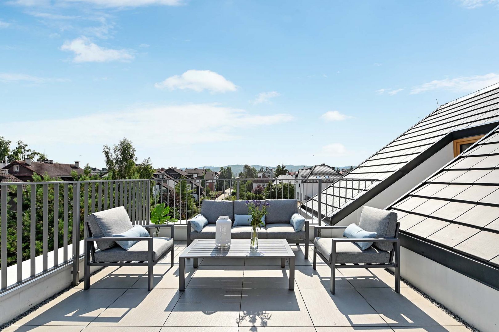 - taras na dachu z pełnym umeblowaniem ( sofa, dwa fotele, stolik)