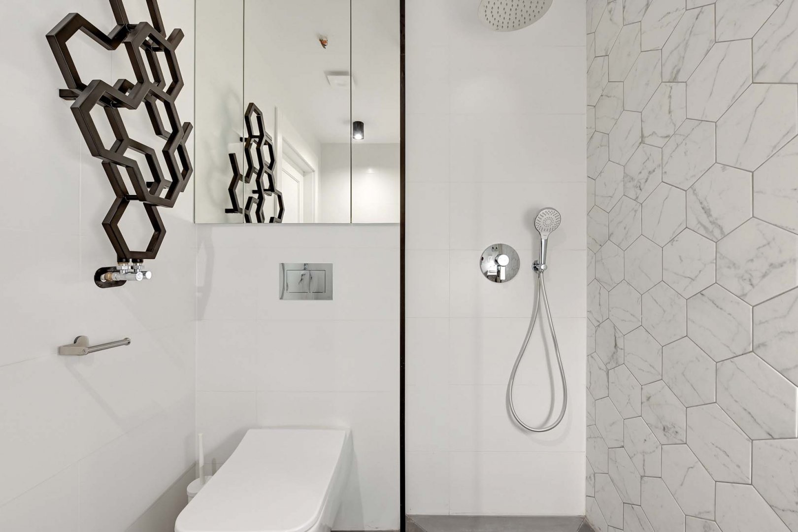 - łazienka z prysznicem i deszczownicą