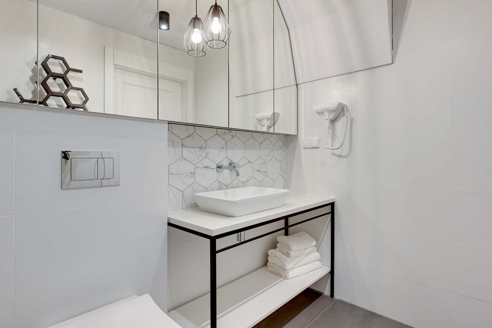 Apartament posiada łazienkę z kabiną prysznicową i suszarką do włosów, w której dla naszych gości przygotowaliśmy bezpłatny zestaw kosmetyków oraz ręczniki.