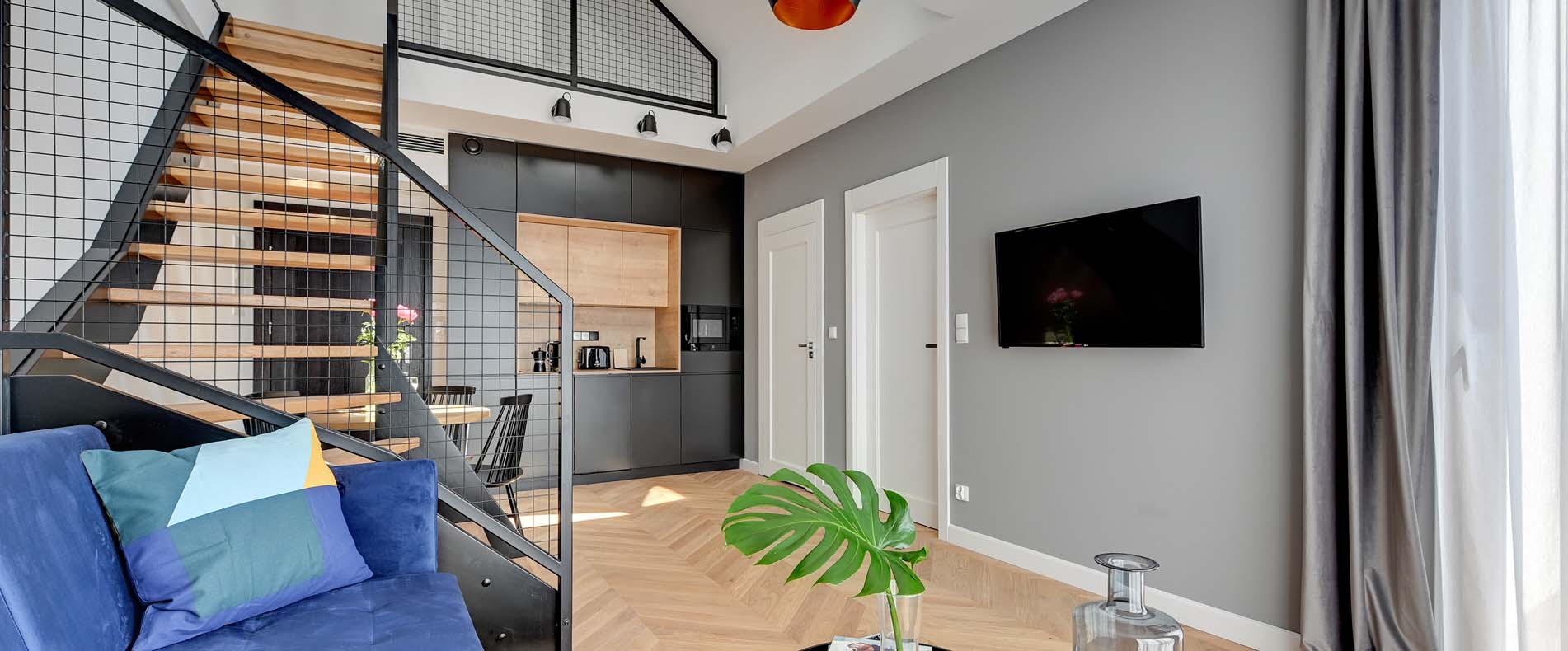 To jeden z dwóch najbardziej luksusowych apartamentów w naszej ofercie. Apartament dwupoziomowy o powierzchni 58 m2.
